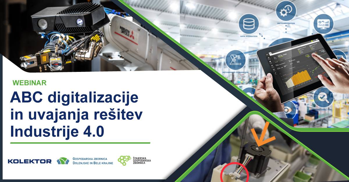 Zato smo se v koncernu Kolektor v sodelovanju s pisarno KOC Krožno gospodarstvo, Štajersko gospodarsko zbornico in Gospodarsko zbornico Dolenjske in Bele krajine odločili za izvedbo webinarja ABC digitalizacije in uvajanja rešitev Industrije 4.0 s katero bomo konkretno in po korakih odgovorili na vsa zgornja vprašanja oz. dileme in na dejanskih primerih uporabe prikazali uvajanje rešitev za pametne tovarne, ki proizvodnim podjetjem zagotavljajo nove priložnosti za povečevanje konkurenčnosti in uvajanje digitalnih produktov ali poslovnih modelov.